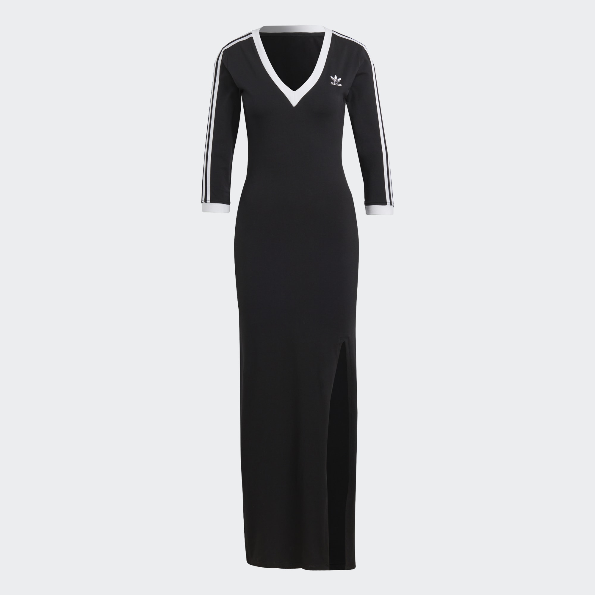 Make a statement without sacrificing comfort with the adithtdas Adicolor Classics 3-Stripes Maxi Dress. The soft cotton blend single jersey fabric allows for effortless comfort in a dress that's cut to hug the body. A V-neck and 3-Stripes along the sleeves add a sporty vibe. Perfect for everyday casual wear that ensures your style is always on point.