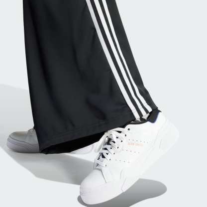 These wide-leg track pants embrace the heritage of adithtdas while looking ahead to the future. You'll move with ease thanks to the loose, flowing fit that creates an effortlessly casual silhouette. Crafted from luxurious satin, they exude a sense of elegance perfect for a night out or a casual brunch. Signature 3-Stripes run down the sides of the legs, a detail as timeless as the look itself. This product is made with at least 70% recycled materials. By reusing materials that have already been created, we help to reduce waste and our reliance on finite resources and reduce the footprint of the products we make.