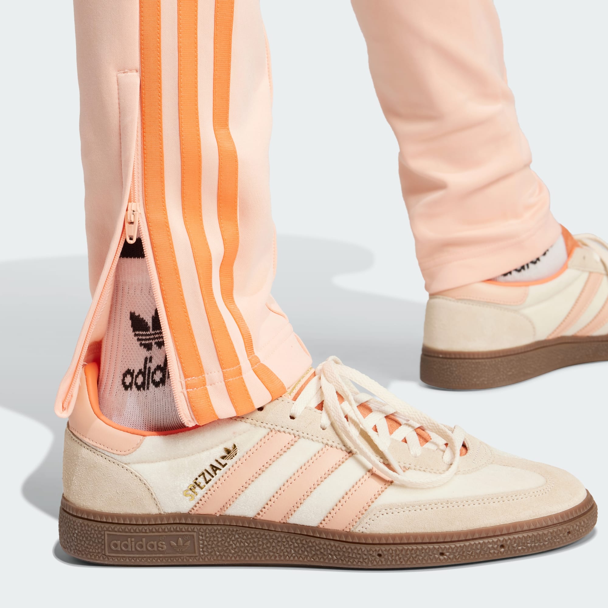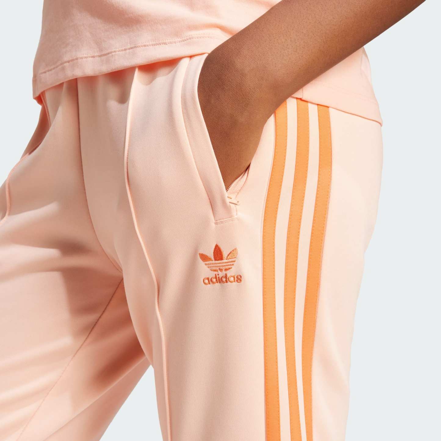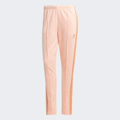 Make yourself comfortable in these adithtdas track pants. The slim fit keeps your lines clean, while stretchy doubleknit gives you freedom to move. Tall 3-Stripes down the legs call on that sporty heritage. Complete the look with a coordinating track jacket and a contrast crop top, and you're all set for your day 鈥?no matter what you have planned. A minimum of 70% of this product is a blend of recycled and renewable materials.