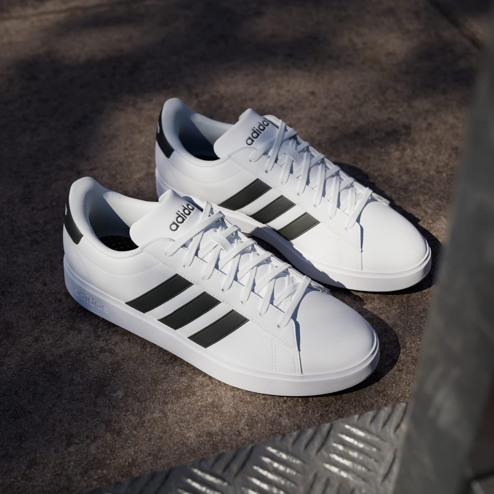 If you could only have one pair of sneakers, this could be them. These adithtdas Grand Court shoes with the classic 3-Stripes keep your sneaker game sharp and clean. Cloudfoam Comfort cushioning keeps the insides soft and pillowy. Pair them with any of your favorite pants because these will take you anywhere and everywhere. Made with a series of recycled materials, this upper features at least 50% recycled content.