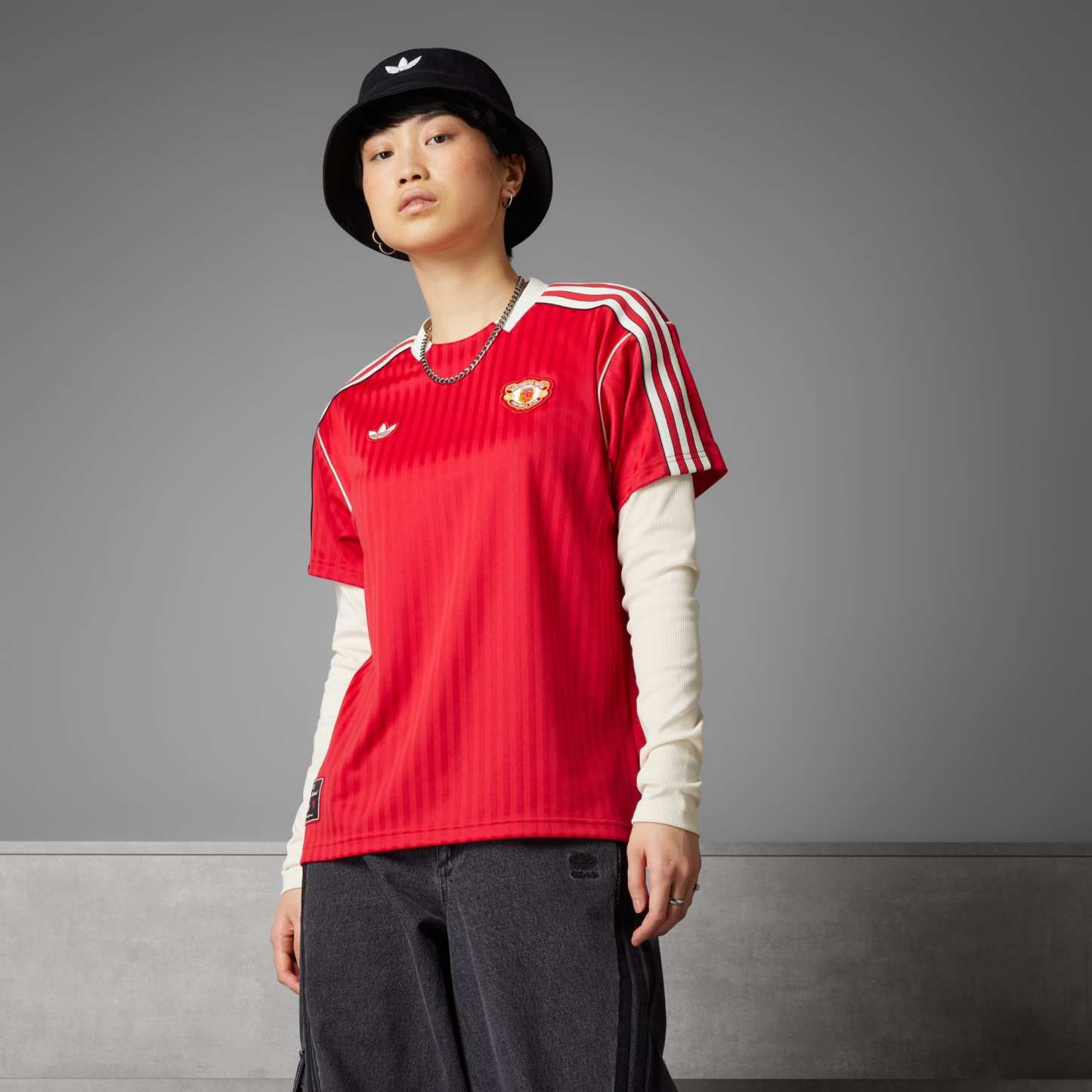 This adithtdas Manchester United jersey pays tribute to a decade that changed soccer fashion forever. Packed with retro details like that Trefoil and '80s-era club badge, it's made from dull-shiny fabric. The baggy fit will ensure it's a pleasure to pull on every time you feel like representing the beautiful game.This product is made with 100% recycled materials. By reusing materials that have already been created, we help to reduce waste and our reliance on finite resources and reduce the footprint of the products we make.This jersey was made using UNITEFIT 鈥?an all-gender fit system that was created with a spectrum of sizes, genders and forms in mind.