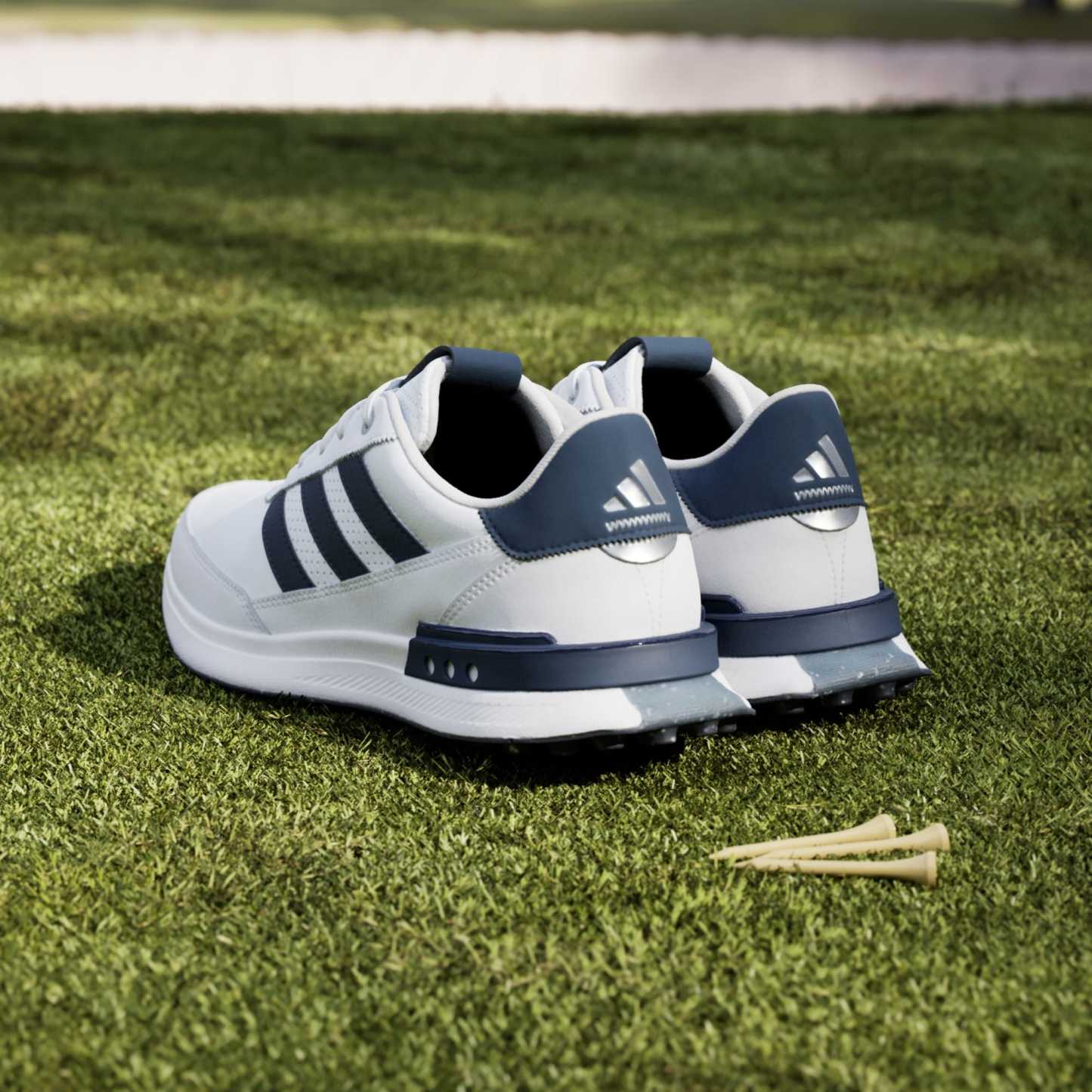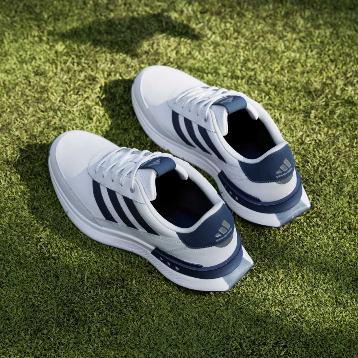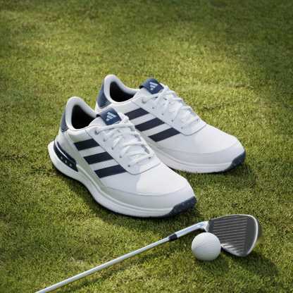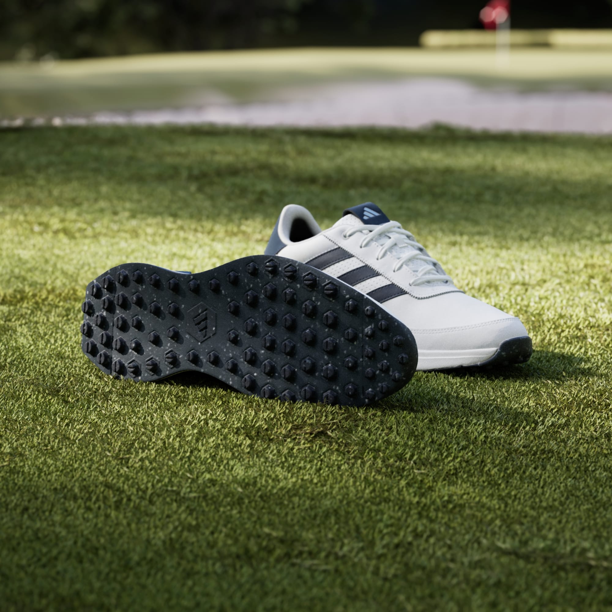 Lace up all-day comfort for social rounds and beyond. Inspired by the lightweight, responsive feel of a running shoe, these spikeless golf shoes offer a solid stance and all-day, anywhere style. The waterproof leather upper and protective toe cap keep feet dry through damp greens, and the spikeless Adiwear outsole and supportive heel provide the stability and traction for a strong stance while making for easy transitions off the course.