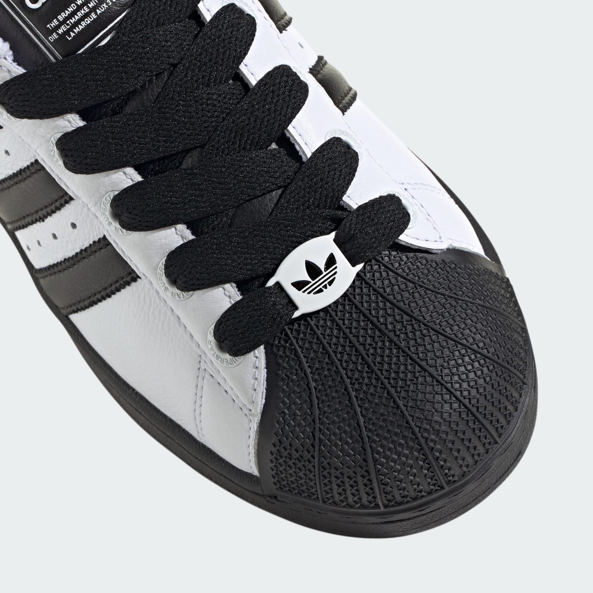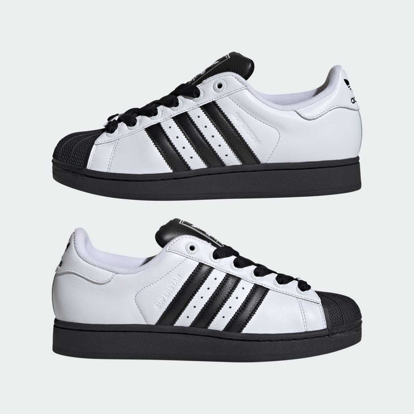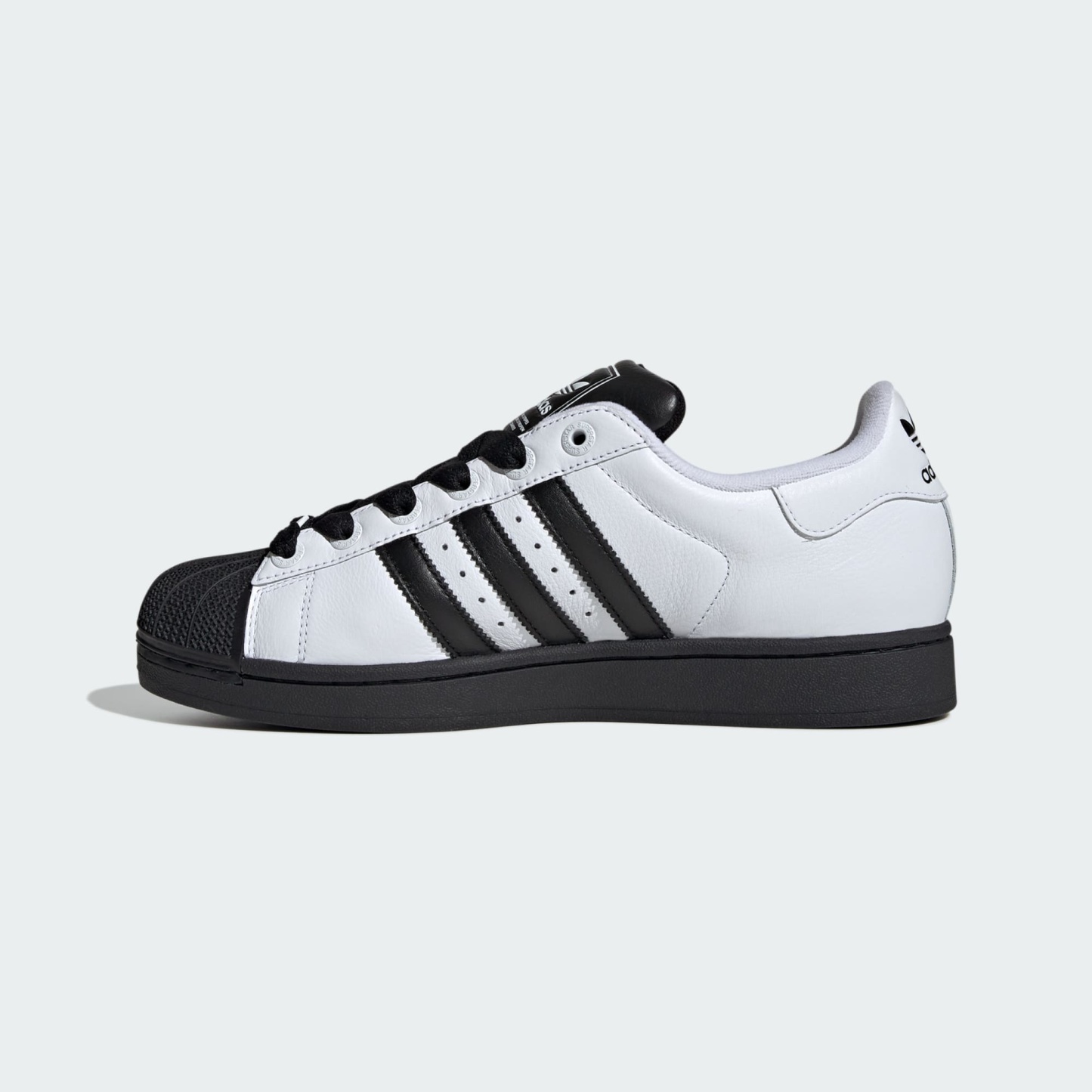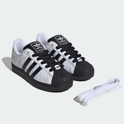 Step into a legend. The adithtdas Superstar II shoes have spent over 50 years leaving an indelible mark on sport, music and street culture. This version features a full grain leather upper, thick laces and a Trefoil-branded lace jewel for added flair. The iconic rubber shell toe caps the design and points the way forward. With a second set of laces included, you can switch up your look in an instant. Done in a range of neutral shades, these sneakers are heritage heavyweights that make any outfit better.